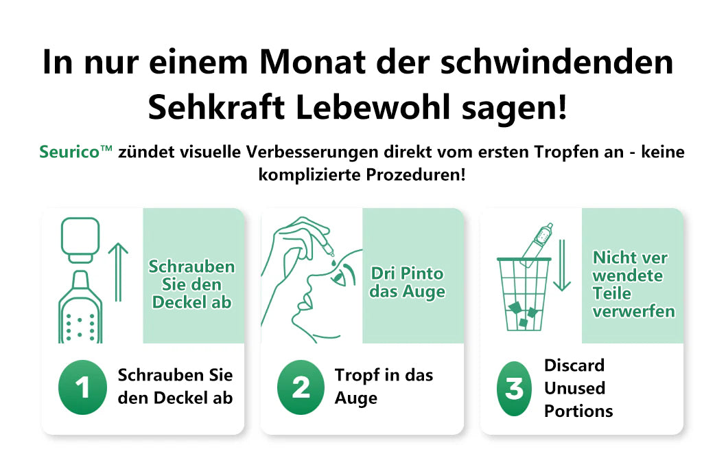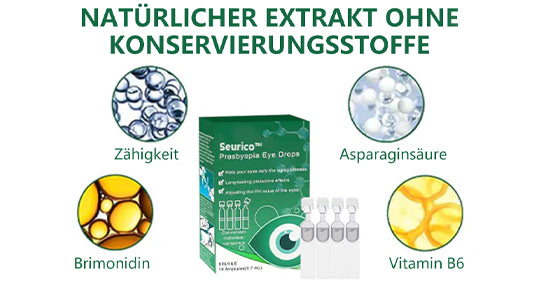 Erleben Sie eine revolutionäre Lösung für altersbedingte Sehprobleme mit Seurico™ Augentropfen. Die von Dr. Jorgensen in Zusammenarbeit mit der Deutschen Gesellschaft für Augenheilkunde entwickelten Augentropfen sind die erste vom LFGB zugelassene Behandlung für Augenkrankheiten, die das Sehvermögen und die allgemeine Gesundheit der Augen drastisch verbessert.45.000 zufriedene Kunden und begeisterte Kritiken machen Seurico™ zur ersten Wahl für alle, die ihr Sehvermögen und ihre Augengesundheit wiederherstellen möchten.
