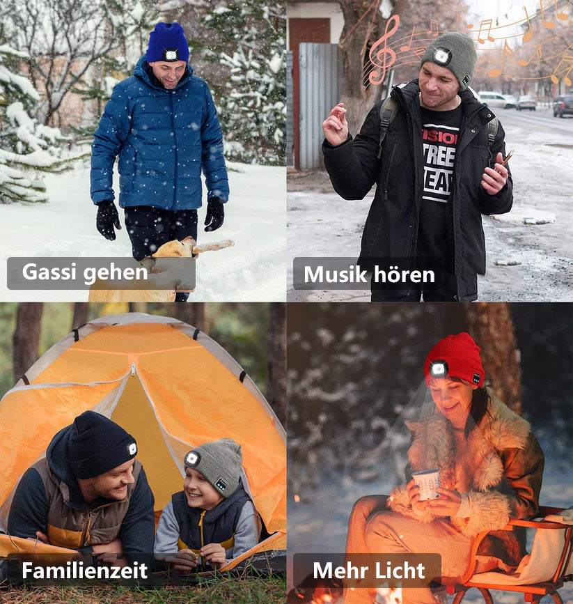 🎁Schenken Sie Ihrem Lieben diese 3-in-1 Bluetooth-Mütze mit LED-Licht, die Wärme, Musik und Sichtbarkeit für Outdoor-Aktivitäten bietet!