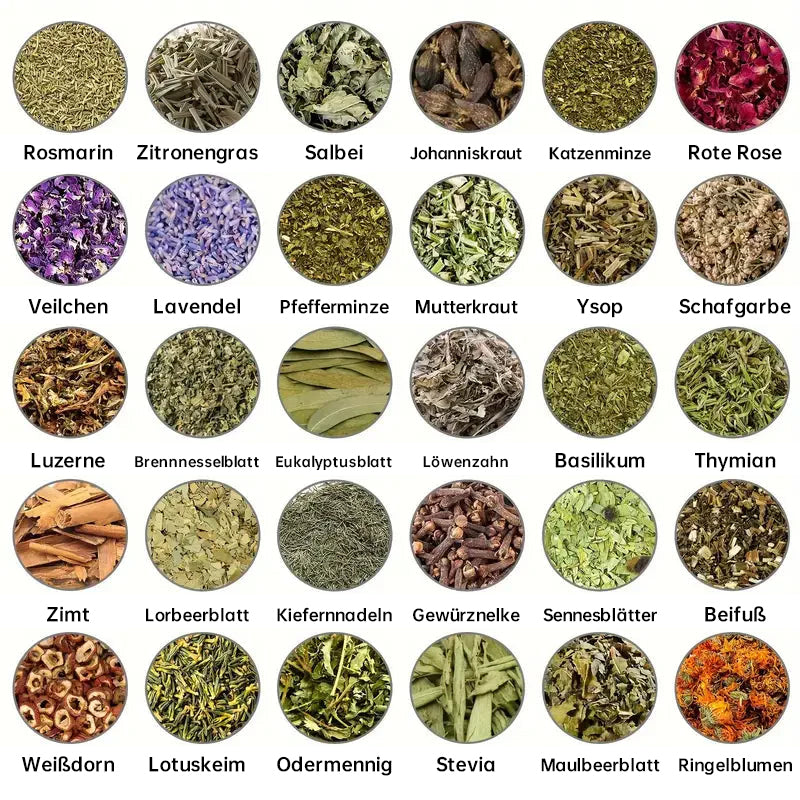 Diese 30 Kräuter wirken synergistisch, um eine Vielzahl von gesundheitlichen Vorteilen zu bieten, einschließlich der Reduzierung von Entzündungen, Juckreiz und Schmerzlinderung. Wichtige Kräuter wie Rosmarin, Pfefferminze und Eukalyptusblatt steigern den Stoffwechsel und fördern die Verdauung, beschleunigen den Energieverbrauch und den Fettabbau, während Löwenzahn und Sennesblatt starke diuretische und entgiftende Eigenschaften bieten, die helfen, Blähungen zu reduzieren und das Gewicht zu halten.
